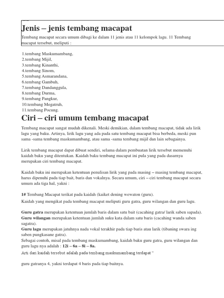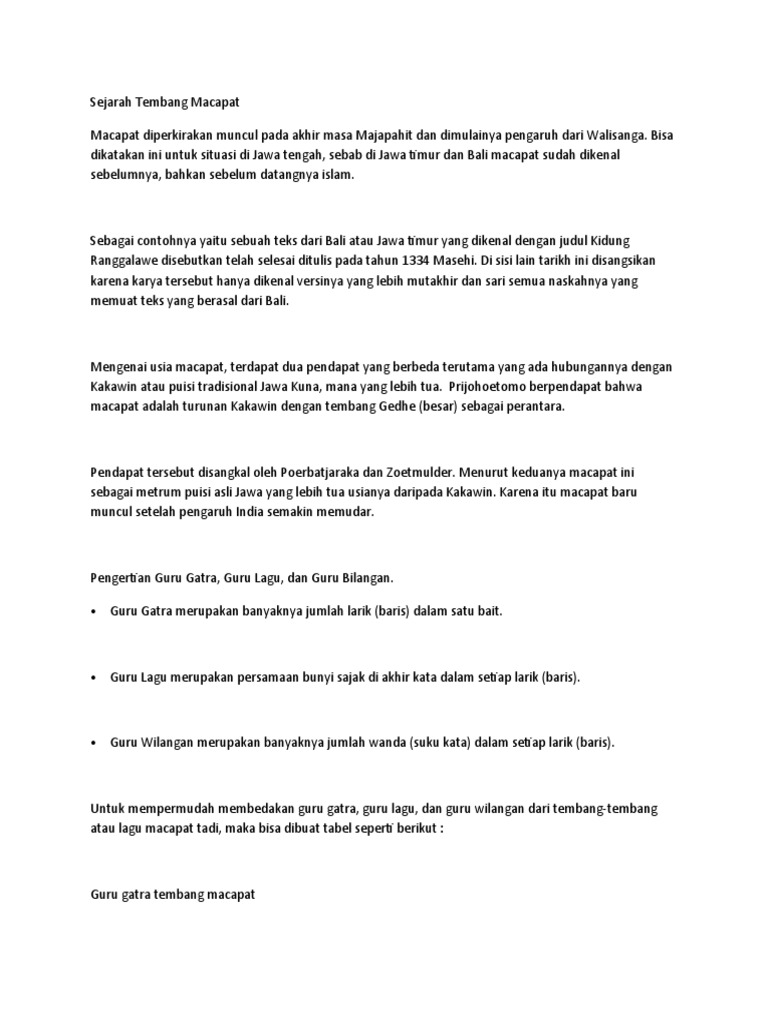 Guru Wilangan Guru Lagu Guru Gatra Tembang Macapat Seputaran Guru
