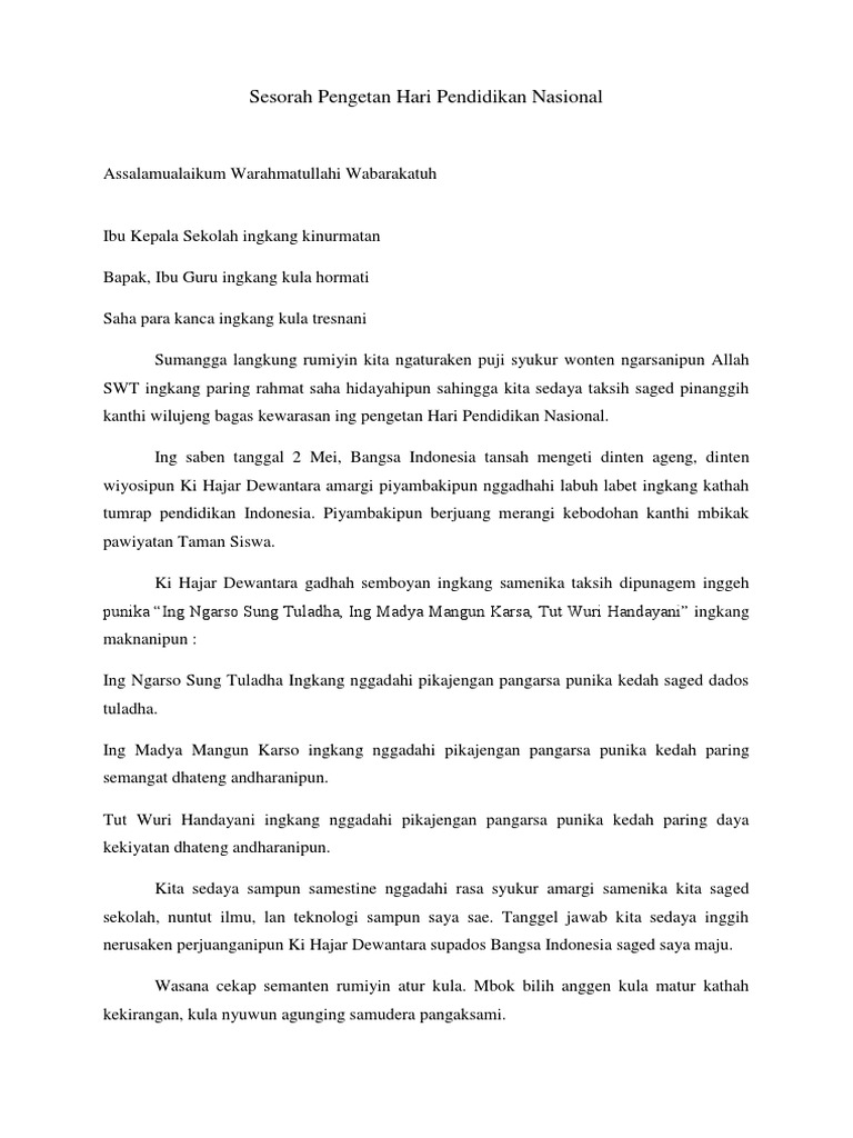 Contoh Pidato Bahasa Jawa Tentang Pendidikan Sesorah Singkat