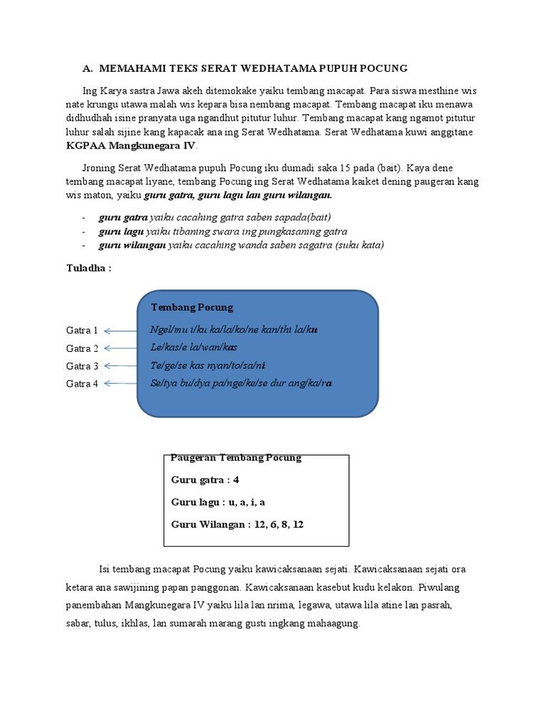 Cacahing wanda saben sagatra diarani a guru gatra d guru sastra b guru wilangan from AA 1. Saben tembang macapat iku ana paugerane dhewe-dhewe. 25 Manut sejarahipun ingkang ngripta tembang-tembang macapat menika PARA SUNAN.