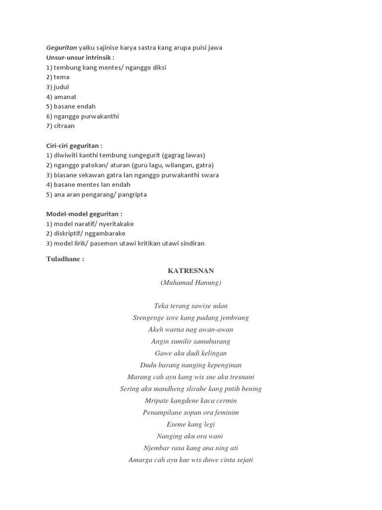 1 Pengertian Dan Contoh Geguritan Dalam Bahasa Jawa Docx Cute766
