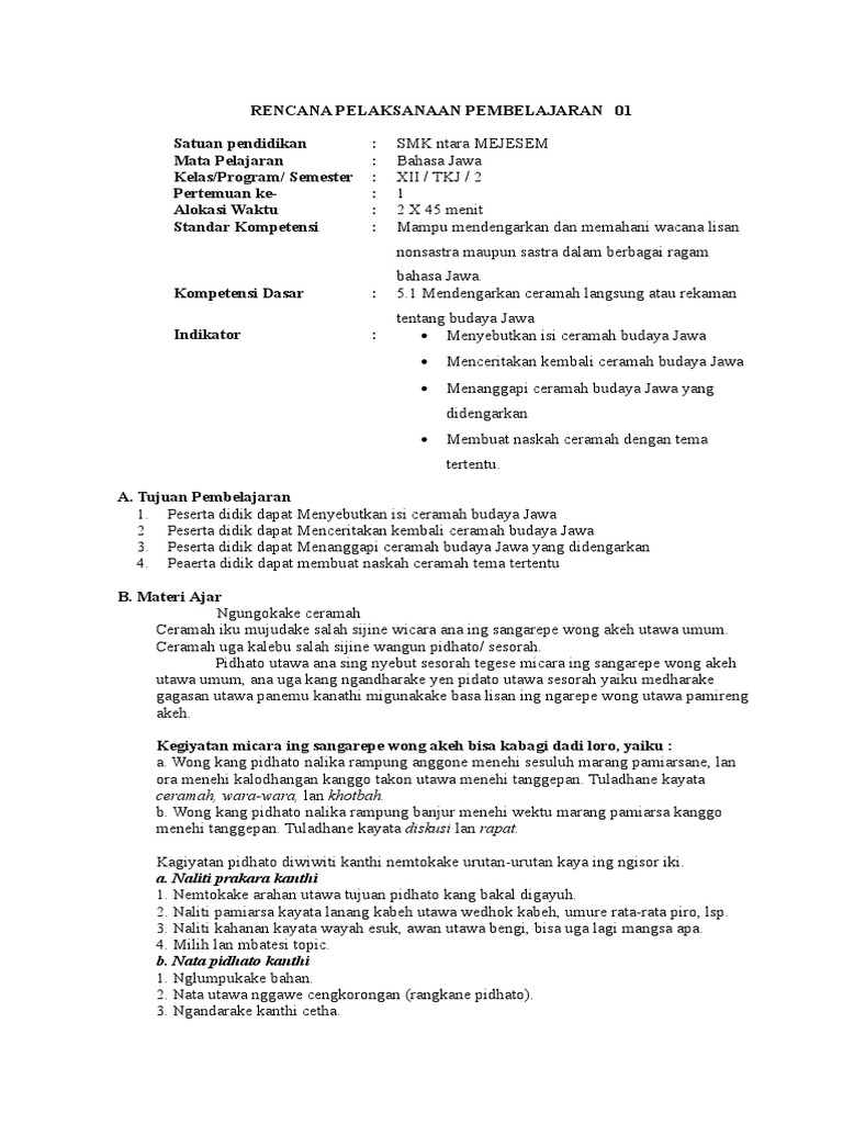 Rpp Bahasa Jawa Kls Xii Genap K13