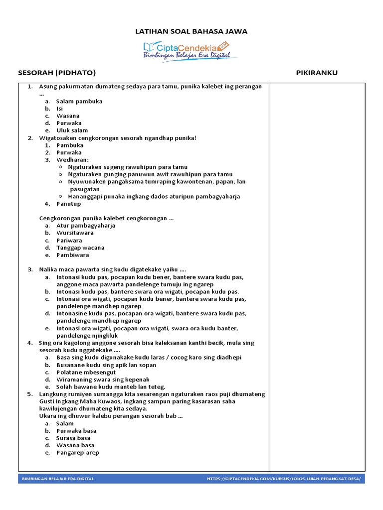 Share this post. Yaiku sesorah sing kudu antuk wangsulan utawa tanggapan. Ing pahargyan apa wae wong kang duwe gawe mesthi ora isa tumandhang dhewe mbutuhake pambiyantuning liyan utawa gotong royong mula nalika sesorah pambagyaharja kang becik.