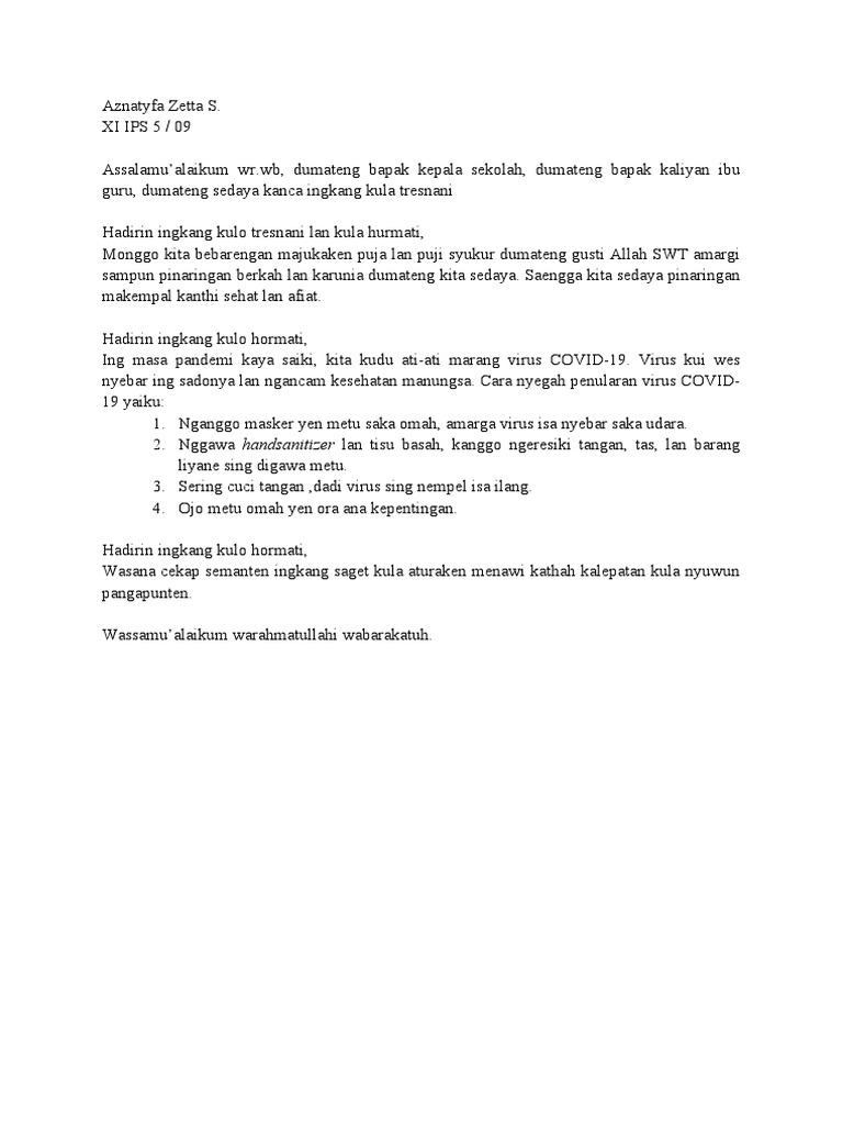 Teks Sesorah Aznatyfa Zetta S Xi Ips 5 09 Docx